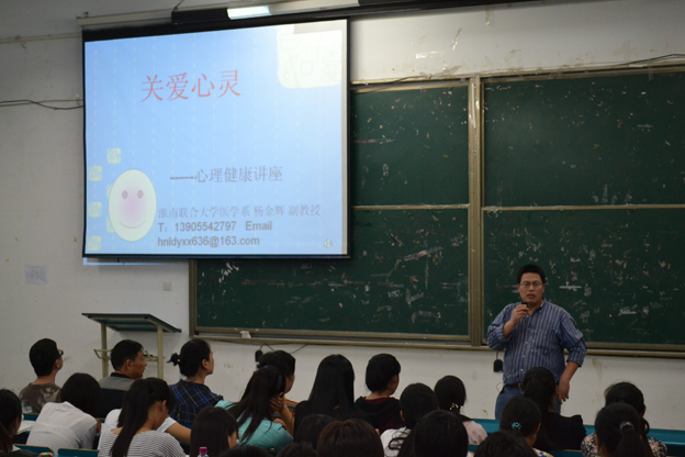 此次活动邀请了医学系杨金辉副教授担任主讲。他以《关爱心灵》为题,从马家爵事件引出大学生心理健康的重要性,结合新生入学生活实际,从如何更好更快地适应大学生活、如何正确处理各种人际关系、养成良好地日常行为习惯等方面和同学们一起对今后的大学生活乃至人生进行了展望和规划,同时对如何应对大学生活中的各种心理问题等方面为同学们进行了生动、有效的心理健康指导,赢得了在场同学的热烈掌声和积极反馈。