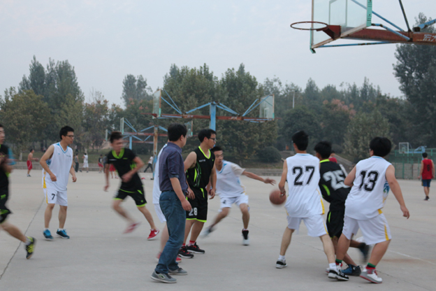 此时已然是接近立冬,天气微冷,还有阵阵微风。但微凉的天气挡不住同学们火一样的激情,篮球赛如火如荼的进行着。随着哨声一响,双方队员入场,排好队列,裁判发球,两队争球,随着队员高高跃起抢球,比赛进入一个紧张的氛围,两方队员快速奔跑,积极投篮。最后比赛在合作与双赢中结束。本次篮球赛本着“友谊第一,比赛第二”的原则,充分表现出了我系自强不息、顽强拼搏的精神面貌。