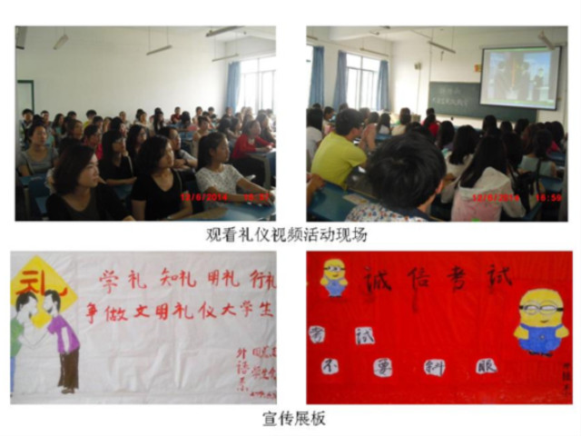 为倡导大学生文明礼仪规范,提升外语学子的文明礼仪形象和综合素质,近日,外语系通过多种形式对学生进行了文明礼仪教育,主要包括开展文明礼仪宣传、召开主题班会、观看大学生规范礼仪演示视频资料、撰写文明礼仪教育活动感想等,教育活动主要涉及大学生的仪容仪表礼仪、公共场合礼仪、集会礼仪、课堂礼仪、交往礼仪等内容。与此同时,我系还针对目前正在举行的各级各类考试,对全系学生进行了全面的考场礼仪教育,对学生在诚信应考、考场着装及考试行为等方面进行约束,为营造全系良好的考风奠定了基础。