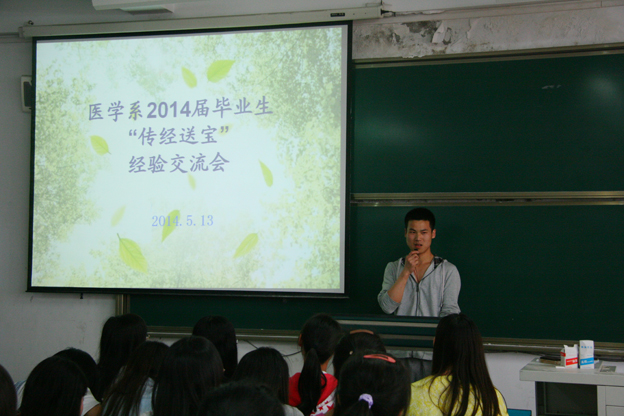 医学系书记首先发表了热情洋溢的讲话,她指出,教育实习和就业择业是大学阶段两件重要的事情,同学们要主动完善自我,树立进取意识,在现阶段做好准备工作,提素质、长能力,为实习和就业打好坚实的基础,并衷心希望通过交流会能给在校同学以帮助和激励。