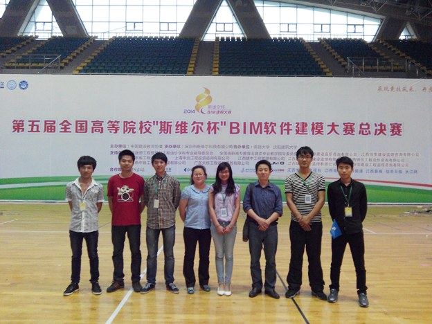2013年12月我系接到参赛通知,系主任立即安排老师组织学生参赛,经过为期半年的培训,最终由2012级工程造价专业学生蒋文文、陈建喜、任飞祥、吕聪、惠超组成代表队参赛,通过初赛网络评审,成功获得晋级总决赛。总决赛分为《建筑设计》、《结构设计与结构分析》、《节能设计与日照分析》、《设备设计与暖通负荷》、《三维算量与清单计价》、《安装算量与清单计价》、《项目管理与投标工具箱》、《建设工程VR虚拟现实》8个专项和1个团队全能,我系代表队认真准备,顽强拼搏,在《安装算量与清单计价》、《项目管理与投标工具箱》专项比赛中分别获得二等奖,《三维算量与清单计价》专项比赛中获得三等奖,并同时获得了团队全能比赛三等奖的好成绩。