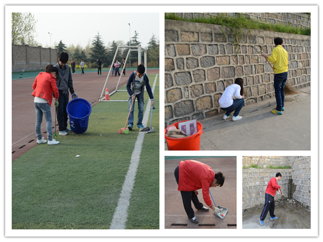 绿草茵茵的足球场,是我们向往的地方。志愿者带着扫帚、簸箕、垃圾桶等清扫工具走进足球场进行全面打扫、清理杂物活动。尽管雨过之后的足球场不好打扫,但志愿者们不放过任何一个角落,伸出你我的手进行彻底清扫,还足球场上洁净的绿色。
