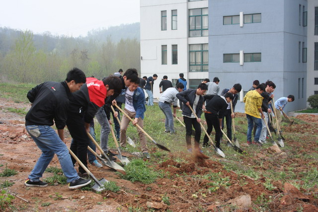 为积极响应学校号召,美化校园环境,4月9日下午建工系组织200多名学生在实训楼东侧开展“美化绿色环境“义务劳动。
