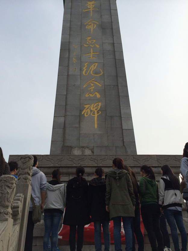 带着无限的敬仰和哀思、全体同学来到革命烈士纪念碑前举行纪念仪式。学生代表向纪念碑敬献了鲜花,全体人员以默哀的形式表达对先烈们的深切怀念。面对烈士纪念碑,全体同学肃穆站立,聆听先烈们的英勇事迹,倍感鼓舞,深受激励。