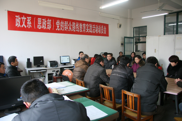 校党的群众路线教育实践活动领导小组第五督导组组长传达了中央和省委、市委关于开展党的群众路线教育实践活动的决策和部署,他指出,一要充分认识开展教育实践活动的重要性,二要准确把握中央、省市委和校党委的部署;三要深入扎实开展好本次教育实践活动。第五督导组组长还就我系如何深入开展好群众路线教育实践活动提出了一系列具体要求,并详细介绍了督导组的工作职责、督导工作主要步骤、工作要求等。