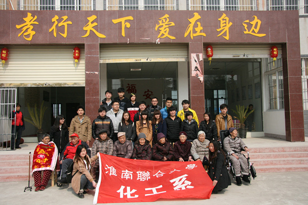 3月8日上午,化工系组织志愿者赴淮南寿春敬老院开展以“孝行天下、爱在身边”为主题的志愿献爱心活动,为老人们送去了真诚的欢乐与春天的温暖。