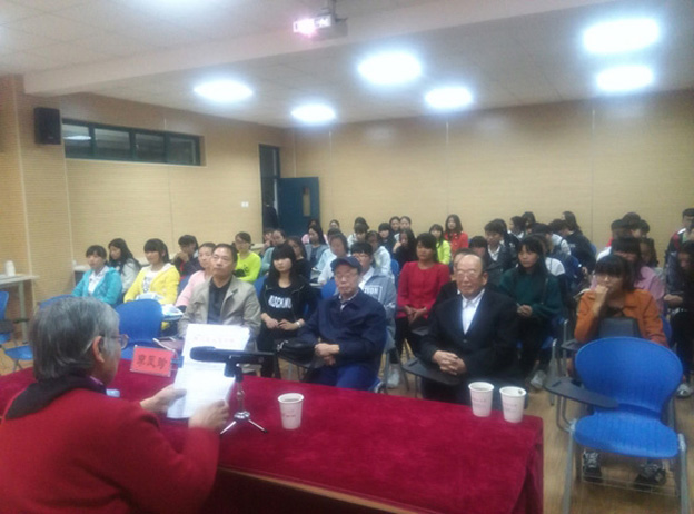 外语系按照学校“与信仰对话·飞Young中国梦”精品报告进校园活动精神,于11月5日晚6点,在实训楼情景实训室1举办了题为“纪念抗日战争暨世界反法西斯战争胜利70周年”的报告会,校关心下一代工作委员会李凤珍副教授担任主讲,关工委老同志们、系党总支书记及全系大一学生听取了报告。