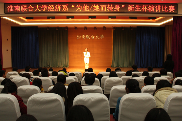 正值学校第九届科技文化艺术节之际,为了加强校园文化建设,体现经济系学生的青春风貌和综合素质,经济系于11月30日下午,在南区一号报告厅成功举行了主题为“为他(她)而转身”新生演讲比赛。