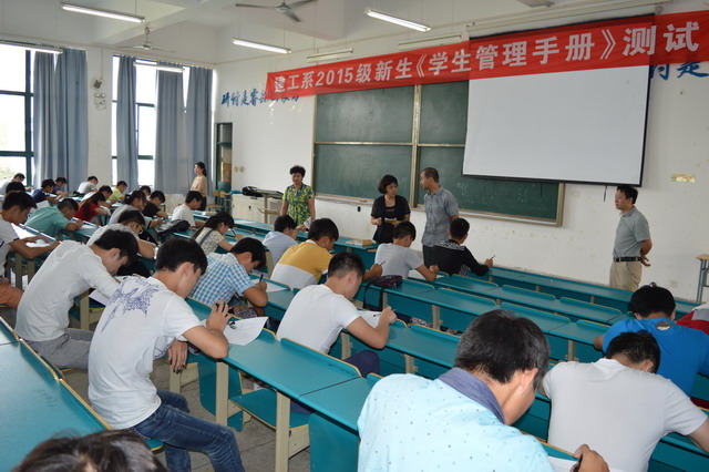 为帮助新入学大学生了解高等院校学生管理制度,尽快熟悉大学环境、适应大学生活,建工系开展了2015级新生《学生管理手册》测试。