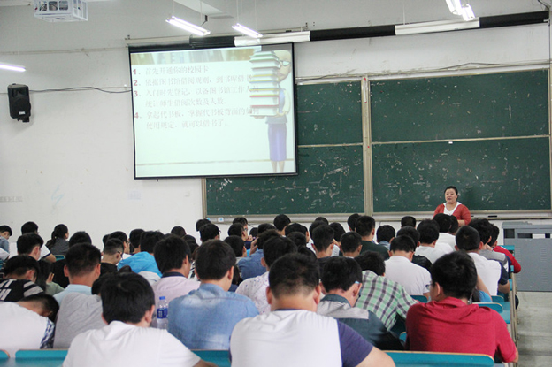 此次讲座聘请了图书馆专业老师主讲。讲座内容涉及图书馆藏书概况、书库分类、如何登陆校园网查询检索电子资源、图书加工程序及图书安全管理制度等。主讲老师精心准备讲座内容,同学们认真听讲,讲座有组织、有秩序、高质量地完成。