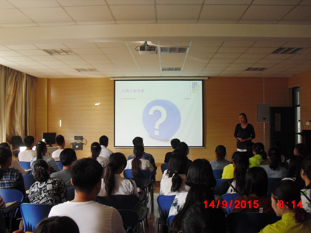 首先进行的是大学生活辅导教育,新生班班主任重点围绕新生如何适应校内外环境、怎样建立和谐的人际关系、通过何种渠道提升学习效率和改进学习方法、如何理性消费及怎样进行心理调节等五个方面逐一展开,她还建议新生要提前做好大学三年的规划,采取短期计划与长期规划相结合的方法,使自己在大学能够学有所乐,学有所成。