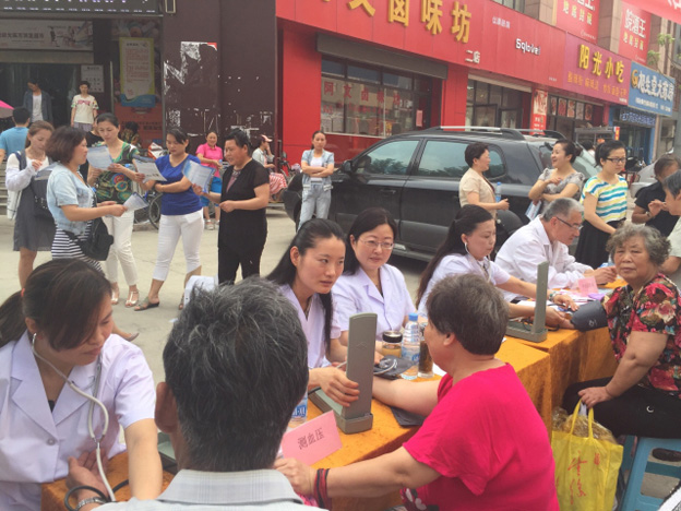 活动中,我系教师发挥专业特长,为辖区居民开展把脉、问诊、测血压等医疗健康咨询服务,活动现场氛围热烈,群众热情高涨,获得了良好的效果,受到了居民的一致好评。期间,医学系党员教师还为社区居民发放了我校2015年秋季招生宣传资料,并针对社区居民提出的关于专业、入学等多方面的问题进行了耐心、细致的解答。