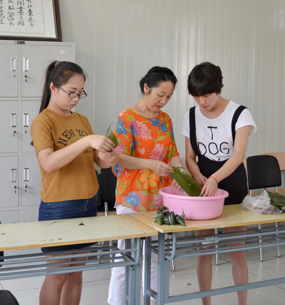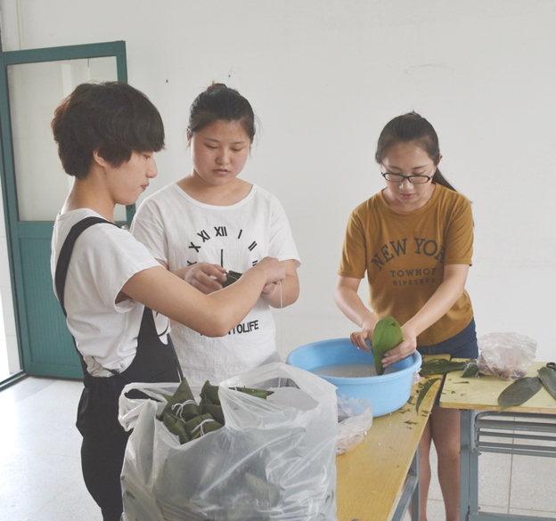 活动一开始,大家便在各位老师的指导下将粽叶卷成漏斗状,装上糯米和蜜枣,再将粽子用线缠好。多数同学都是第一次参加这样的活动,第一次亲手包粽子,新鲜感自然不在话下,看着自己包的“奇形怪状”的粽子,同学们都不免感慨,同时也体会着动手包粽子的愉快,整个活动现场一片欢声笑语。活动结束后,同学们将包好的粽子送到事先联系好的食堂师傅处煮熟,纷发给各个宿舍,同学们品尝着自己动手包的粽子,大家露出了喜悦的笑容。
