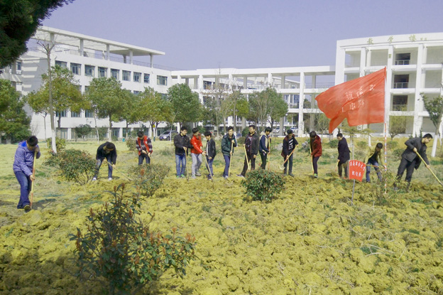 今天是我国第37个“植树节”,为鼓励同学们美化环境,绿化校园,机电系组织学生志愿者在校红旗广场开展义务植树,翻土活动。