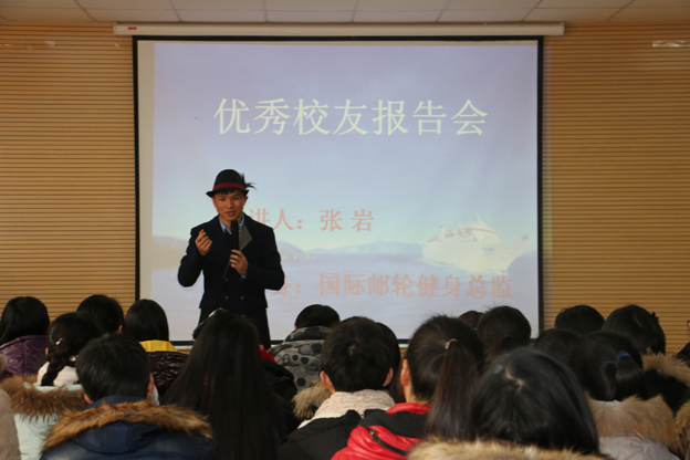 张岩讲述了他从2014年顶岗实习至今就职于公主邮轮的亲身经历,与学生们分享了他从一个健身教练成长为健身总监的全过程。他指出在这个过程中勤学苦练、坚持不懈、诚恳踏实是他成功的关键。张岩自信的谈吐、幽默的语言、开阔的视野让学生尤为羡慕。现场氛围十分热烈,学生们对登上邮轮工作产生了极大的兴趣,大家迫不及待、争先恐后地与其交流,对于学生提出的关于工作环境、工资待遇及日常工作等问题,张岩一一作了详尽的回答。他用自己的实际行动证明了只要付诸行动,一切皆有可能。他祝愿学弟学妹们学业有成,能够拥有一个精彩的未来,也期待有朝一日可以与学弟学妹们并肩作战。报告会持续了两个多小时,在学生们的意犹未尽中圆满结束。