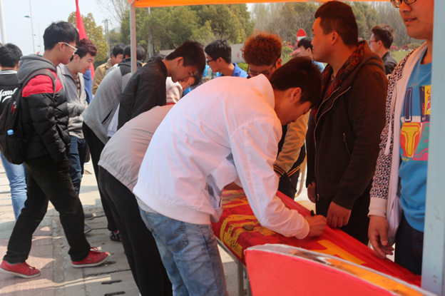 3月31日中午,在博学西路、女生4号楼前的广场上,人头攒动。由机电系团总支学生会组织的适龄青年兵役登记宣传活动暨“积极响应祖国的征召,踊跃参加兵役登记”大型签名活动正式启动。这既是国防教育的一次生动实践,也是推进我校年度征兵工作的实际举措。