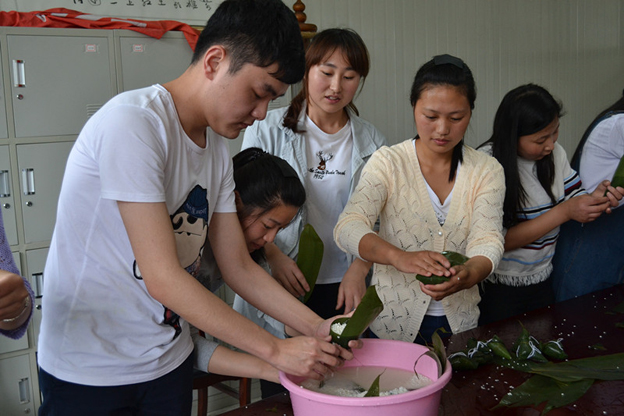 本次活动旨在寓教于乐中,让同学们感受传统文化魅力和节日快乐。活动以班级为单位,每班选派两名选手参赛。赛前,系里精心准备了粽叶、糯米、大枣以及比赛所用的剪刀、线绳、餐盘等,邀请了老师为大家“授课”,为同学们讲解包粽子的技巧和注意事项。比赛中,尽管选手们“下手”时状况百出,粽子包的更是“形状各异”,但同学们热情丝毫不减,赛场上不时传来阵阵笑声,包进粽子里的不只是糯米和蜜枣,更是大家快乐与欢笑。经过半个小时的比拼,最终2014级物联网专业的同学们包的粽子保质保量,获得冠军。