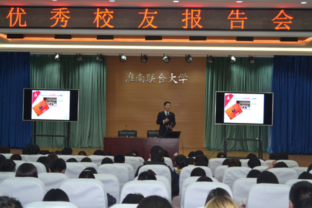陆景龙再次回到母校,倍感亲切,感谢学校培养、信任与关怀。他在校期间成立了校武术协会,参与承办了淮南五所高校计算机系迎奥运大型文艺汇演等活动,现在就职于上海震旦办公自动化销售有限公司,任区总监。报告会上,陆景龙以亲身经历与同学们分享了其在大学学习、就业的艰辛、喜悦、收获和思考,鼓励同学们要珍惜在校时光,努力学习专业知识,拓展知识面,磨练过硬职业本领,增强个人能力,为就业做好充分准备。陆景龙的报告逻辑严密,案例生动,分析透彻,融指导性、实用性于一体,勉励大家树立坚定理想信念,保持乐观姿态,以敏锐的眼光洞察问题,获取先机,迅速行动,成就梦想。