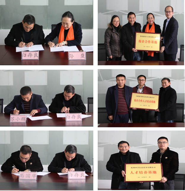 11月24日下午,我校与合肥德邦货运代理有限公司、淮南新街口百货有限公司、杭州四喜信息技术有限公司在经管楼四楼会议室隆重举行校企合作签约授牌仪式。企业相关领导、副校长白存良出席了签约仪式。仪式由经管学院负责人主持。
