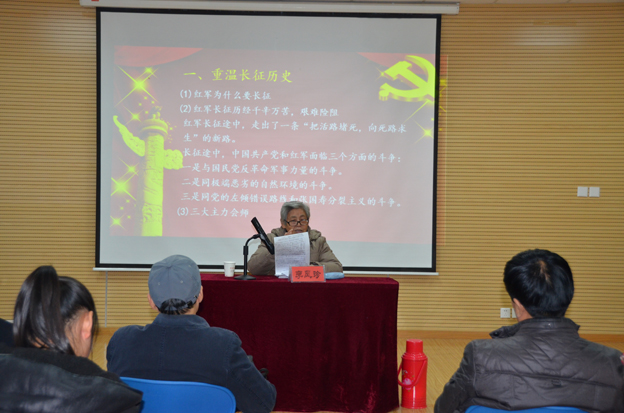 为深入进行爱国主义教育,弘扬爱党精神,根据我校“与信仰对话·飞Young中国梦”精品报告进校园活动统一部署,12月1日,外语系举办了“与信仰对话·弘扬长征精神”的专题报告会。校关心下一代工作委员会李凤珍副教授担任主讲,关工委老同志、系党总支负责人、辅导员及外语系学生认真听取了报告。