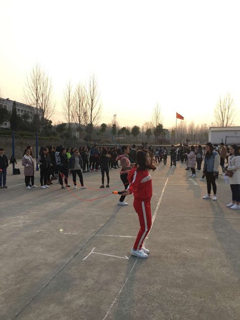 本次活动项目分为跳绳组和毽球组,在裁判宣读完比赛规则后,比赛正式开始。毽球比赛随着一声哨响率先进行,女生们轻装上阵,身轻如燕,灵活敏捷,娴熟的动作让围观同学赞叹不已,来自2016级助产1班梁丽在规定的时间勇夺第一名。跳绳比赛同样趣味盎然,女生们灵动的身姿,轻快的跳跃,也为美好的春日增添了勃勃生机,最终来自医学院16级自考班的余婷婷在规定的时间内,获得该项目第一名。