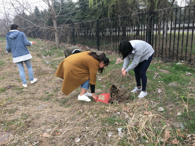 活动现场同学们热情高涨、干劲十足。各院系同学在“概论”课老师的带领下,将绿化带内石子、砖块、枯枝败叶、食品包装袋等杂物一一清理干净。打扫完划定卫生区后,同学们还主动参与到对卫生死角的清扫中,有的垃圾埋的很深,他们就用木棒挖;有些细小的纸屑、塑料袋等垃圾无法用上工具,他们就用手捡……经过近2个小时的认真清理,整个校园环境面貌焕然一新。同学们看到自己的劳动成果后,决心在今后的生活中养成良好的行为习惯,用实际行动来保护环境,并时刻用实际行动传承雷锋精神。