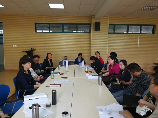外语系主任首先向大家传达了通知要求,布置了期中教学检查内容。她要求:各教研室主任组织“公开课”教研活动,检查所有课程的教学情况,自查教研室活动开展情况,并开展学生座谈会;各任课教师不得提前下课,上课带齐教学资料,课堂严禁学生使用手机。随后召开了全体教师座谈会,大家针对学校发展、教学方法、学风建设、学生管理等方面提出了宝贵的意见和建议。