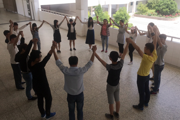 班级有了凝聚力,同学们才能在淮南联大这个大家庭找到归宿感、才能在未知的生活中具备敢于克服困难的勇气。15级网络技术的同学们响应大学生心理健康日的号召,通过“解开千千结”活动让同学们切身地感受到团队力量和合作精神的重要性。每位同学围成向心圆后双手分别任意拉住非左右两边同学的手,从而形成一个“错综复杂”的结,在不松手的前提下,通过钻、跃、跨、转等方式最终打开结,成为一个完整的圆。