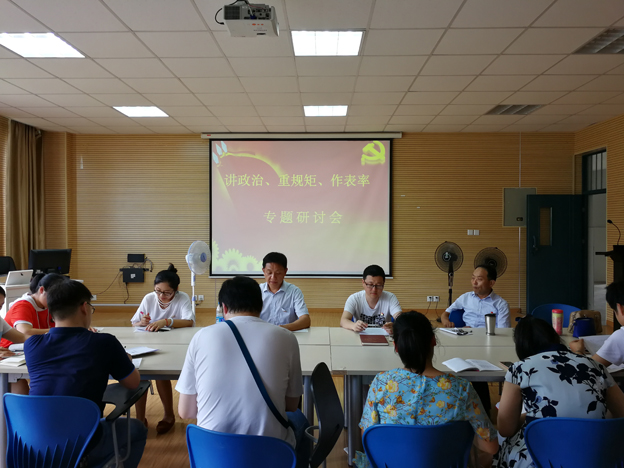 7月4日下午,外语系党总支在情景实训1室召开“讲政治,重规矩,作表率”专题研讨会,外语系全体党员参加会议,系党总支负责人主持会议。