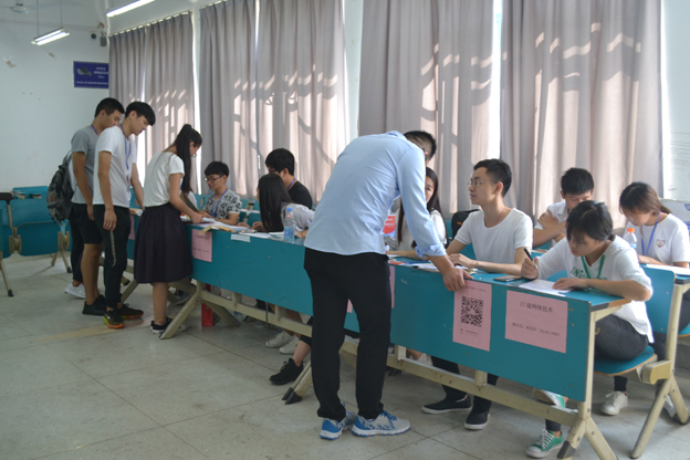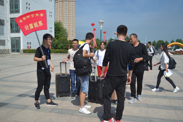 校领导高度重视此次迎新工作,多次亲临计算机系迎新现场了解情况、检查指导、关心慰问,与新生、家长及迎新工作人员亲切交流。计算机系领导也带领专业教师全程参与,在现场负责解答各类专业问题、应对突发事件,确保迎新工作井然有序。各新生班级的辅导员、班主任更是全天候守在报名现场,迎接每一位班级新成员,第一时间给予关心和照顾,并提前建好了新生班级QQ群、微信群,方便师生交流。计算机系学生会组织的志愿者们热情周到的为学弟学妹们服务着,新生和家长一下车,志愿者们马上微笑着迎上前去:“你好”,“欢迎来到学校”,“抢”下新生和家长手中沉重的行李,引导新生办理注册、交费、宿舍登记、领卧具、入住等入学手续,并耐心解答学弟学妹们的各种问题。迎新现场人头攒动,但却秩序井然。