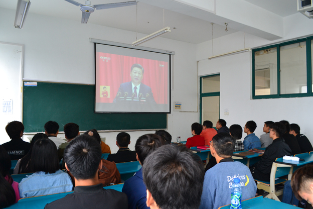 开幕会上,大家聚精会神地聆听习近平总书记代表十八届中央委员会向大会做报告。收看直播现场气氛热烈,犹如置身大会现场,同样感受深刻。由于工作原因而未能参加集中收看的师生,通过电视、网络、广播等各种方式密切关注盛会。
