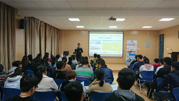 厦门海陆海事有限公司是经厦门工商局注册,海事局认证的船员服务机构。在武汉、上海等地均设有分支机构,是从事国际邮轮人员输出的专业机构。从2003年至2015年该公司已累计派出10000人次国际邮轮服务人员。罗总监首先向同学们介绍了美国嘉年华、美国皇家加勒等世界知名邮轮公司,并展示了国际豪华邮轮实拍照片,接着介绍了海乘相关工作岗位对外语能力的要求和薪资待遇。