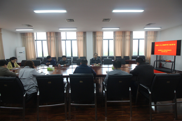 11月14日下午,校机关党总支在办公楼三楼会议室召开党的十九大精神学习宣讲会。机关党总支委员、各支部书记参加会议。会议由机关党总支书记主持。
