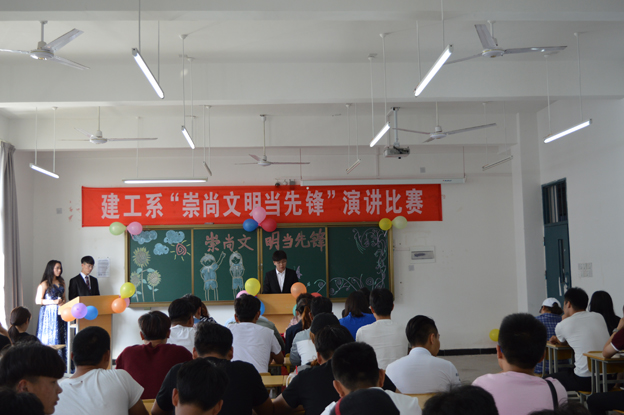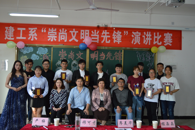 5月9日下午,建工系“崇尚文明当先锋” 主题演讲比赛决赛在建工系教室举行,建工系党总支书记廖美华及部分老师出席并担任评委。
