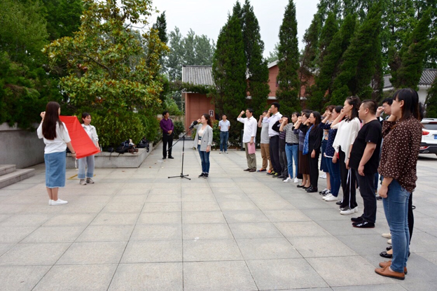 立夏的小甸集特支纪念园,松柏苍翠,寿县革命烈士纪念塔高高耸立在纪念园内,气氛庄严肃穆。经管学院党总支、医学院党总支全体党员、教师和入党积极分子向革命烈士纪念碑敬献花篮。全体师生向革命烈士三鞠躬致敬、重温入党誓词并绕行纪念碑一周。