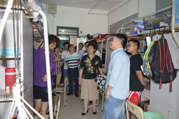 6月11日,在廖美华书记和黄伟主任带领下,我系领导班子、全体班主任辅导员以及学生会干部,对建工系学生宿舍进行全面检查。经过一个多小时的检查,建工系学生宿舍整体情况良好,但个别宿舍卫生状况欠佳,并被当面提出警告,责令整改。廖书记要求学生们要注意经常开窗通风,避免在宿舍吸烟,并教育同学们要时刻注意防火防盗,严禁违规用电。