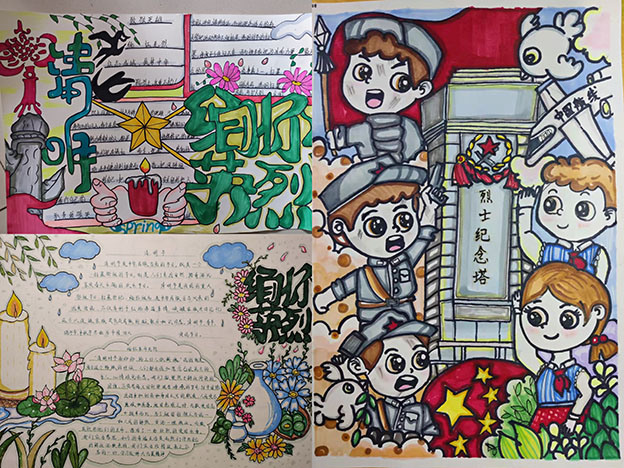 青山有幸埋忠骨,吾辈承志启新程。虽然在疫情封校期间,也阻挡不了同学们的参与热情,同学们通过主题绘画、手抄报、书法、征文等多种形式,写下歌颂先烈的古诗词和文言文,缅怀那些民族英雄们,更好地继承先烈遗志,赓续革命传承。